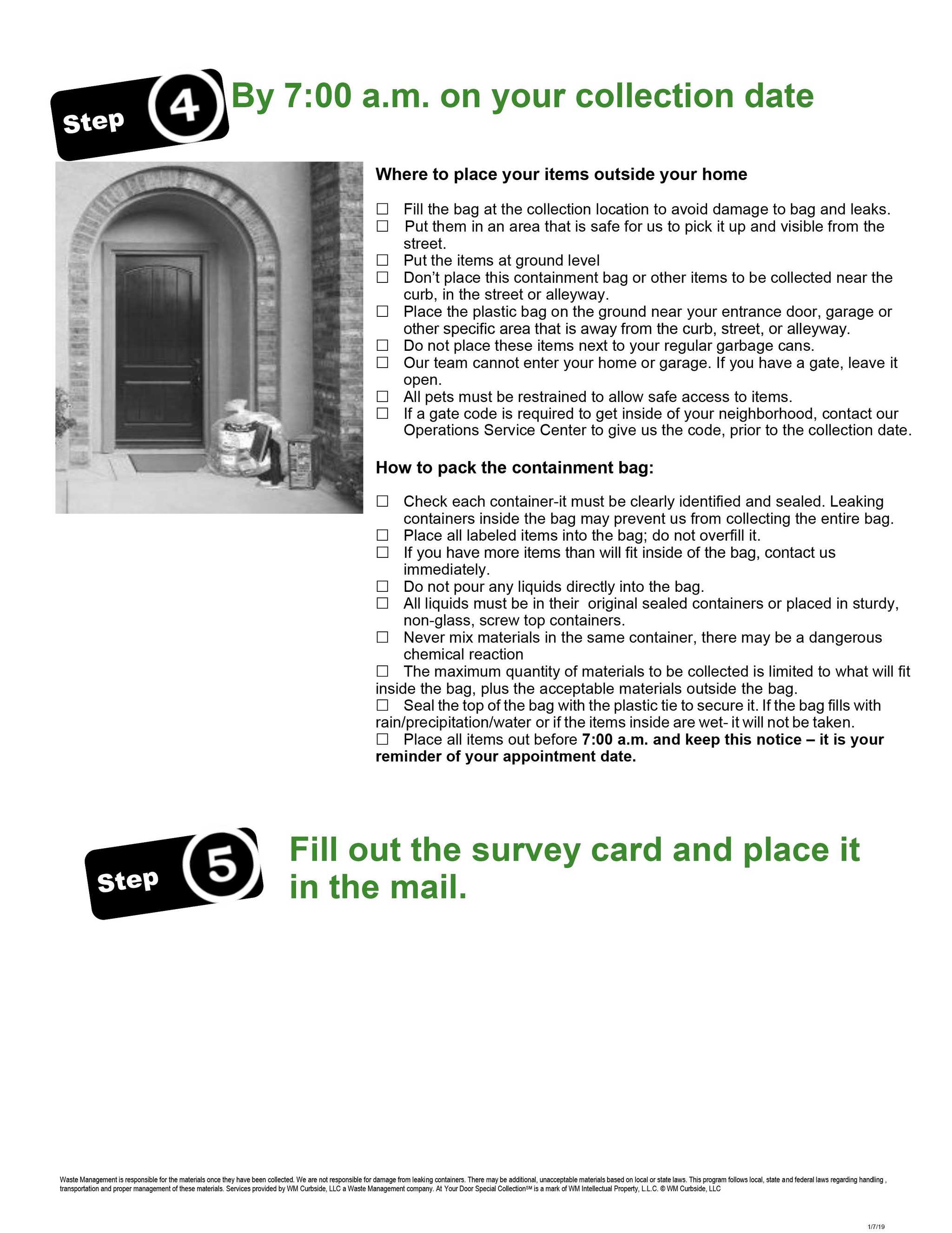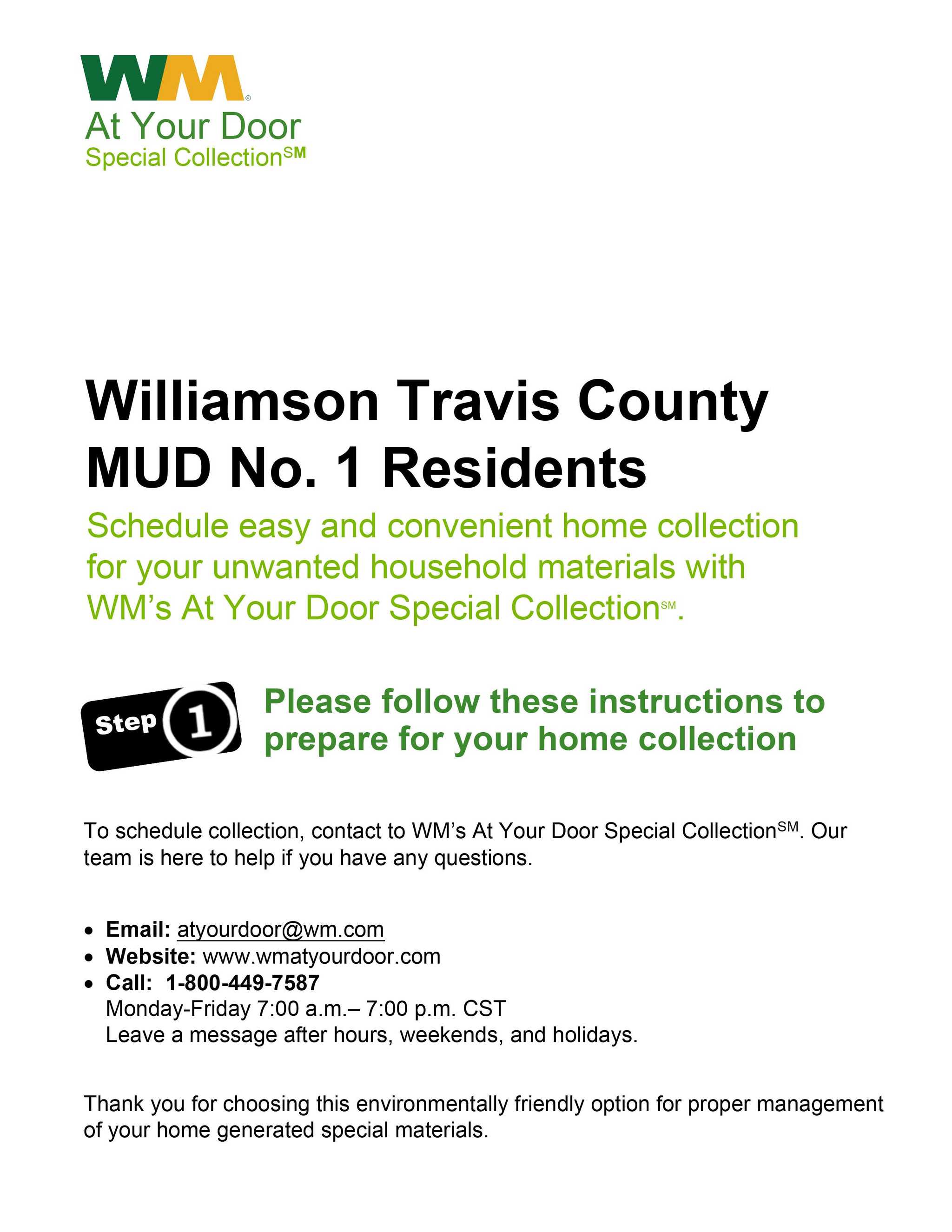 Our District’s waste collection company offers numerous options for disposal of materials not otherwise collected through our weekly residential curbside pick-up service: